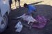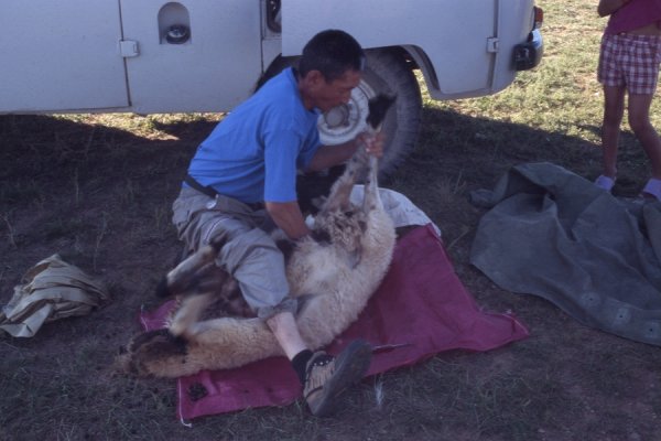 Auf traditionelle Weise wird dem Tier als erstes mit der bloßen Hand die Hauptschlagader durchtrennt.