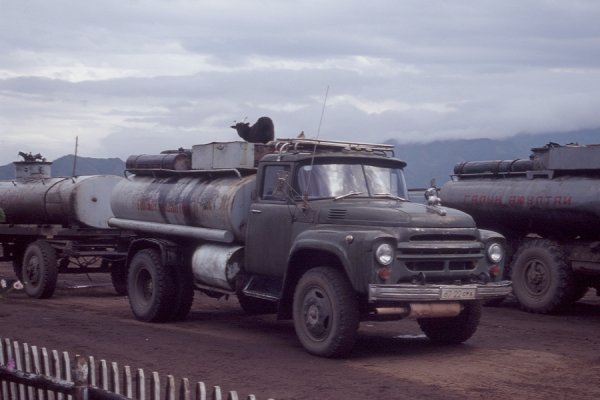 Vor einem Gazar ("Hotel") sah ich diesen Tanklaster mit lebender Ladung....