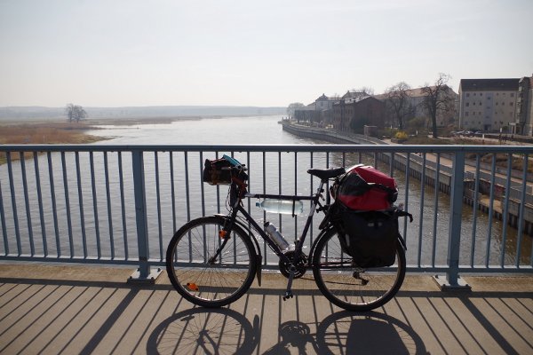 Sonniges Frühlingswetter lockte mich zu einem spontanen Kurzausflug in das westliche Polen. Los ging es in Frankfurt/Oder - zunächst per Rad. Mit dabei: ein Schlauchboot und ein vierteiliges Paddel.
