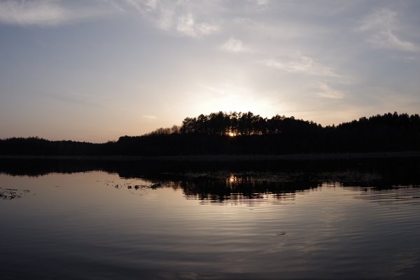 Bei Sonnenuntergang erreichte ich den flachen Jezioro Ratno (Rettensee). Das Wasser ist hier kaum einen halben Meter tief, darunter befindet sich jedoch ein bodenloser Sumpf.