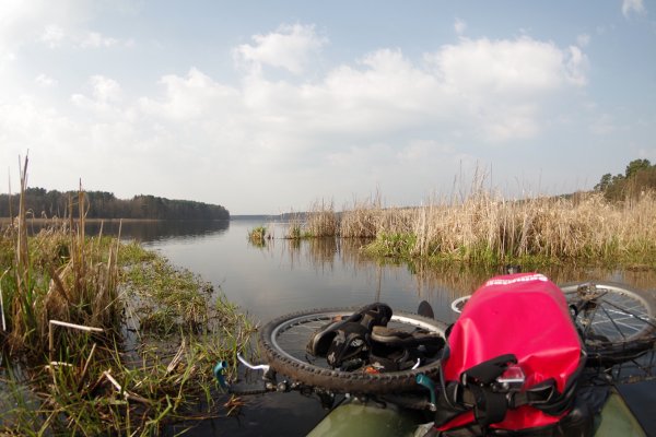 Übergang zum drei Kilometer langen Jezioro Wielickie (Großer See). Wegen des spürbaren nordwestlichen Windes hielt ich mich bei der Seeüberquerung am rechten Ufer.