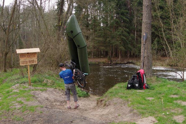 Boot und Gepäck mussten an dieser Stelle umgetragen werden. Dabei zeigt sich beispielhaft der Vorteil der leichten "Alpacka" Packrafts - der hier verwendete "Explorer 42" wiegt weniger als 3 kg!