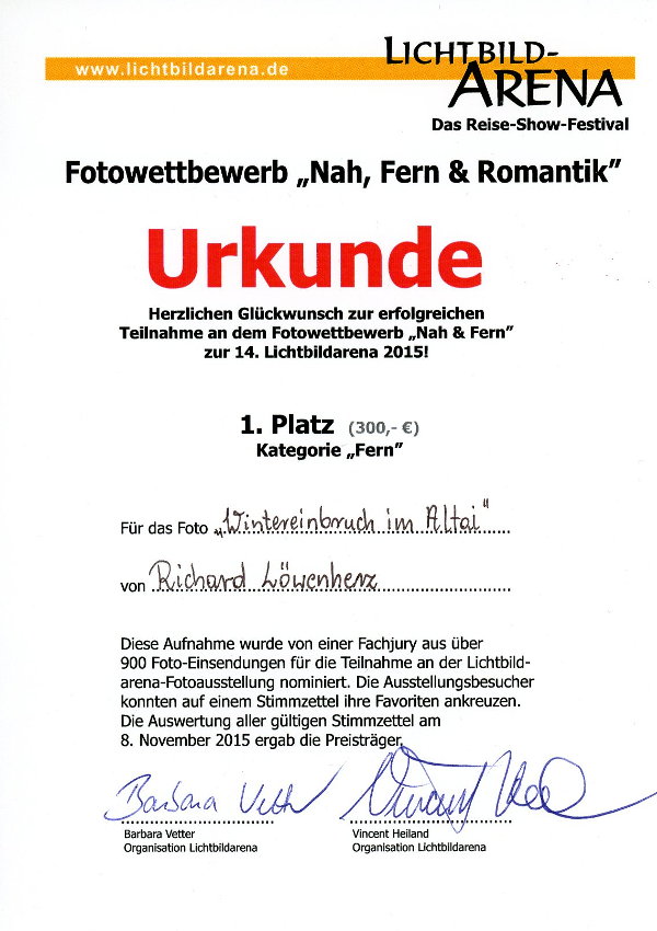2016 erfolgreiche Teilnahme an drei Kurzvortrags-Wettbewerben ("Bestes Abenteuer" beim Abenteuer- und Reisefestival El Mundo in Judenburg/Österreich, 1. Platz beim Reise-Show-Festival der Lichtbildarena in Jena, 1. Platz beim Bergsichten Berg+Outdoor Filmfestival in Dresden 2016 und 2018) - Beginn der professionellen Multimediavorträge