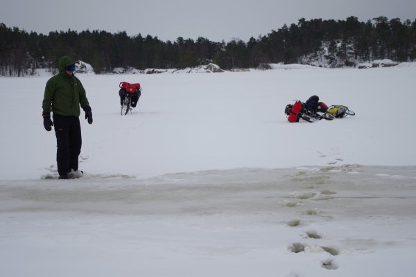Auf dem Hamnödjupet fuhren wir etwas weiter aufs Meer hinaus. Am Rande einer Eisbrecherlinie wurde aber erst einmal die Eislage erkundet...