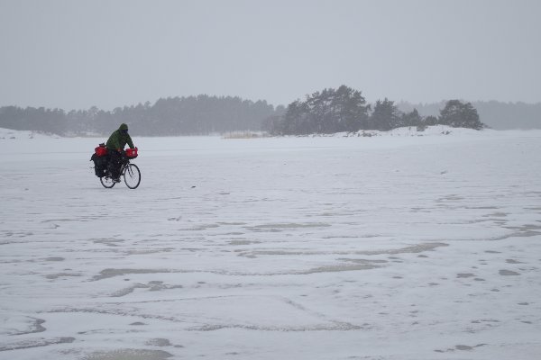 Die Eisbrecherlinie konnten wir problemlos queren. Das zusammengefrorene Scholleneis war sogar ideal zum Eisradeln, da auf diesem kaum Schnee lag.