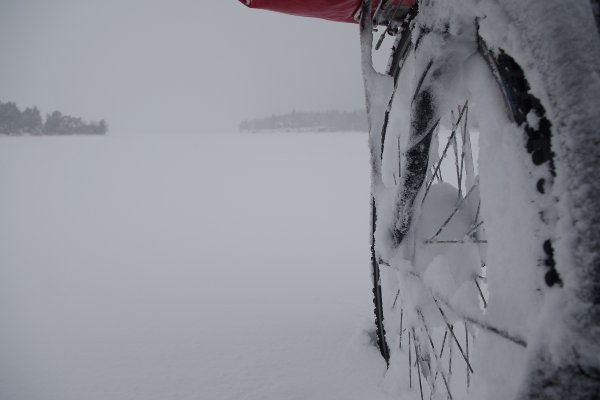 In der windgeschützten Bucht zwischen den Inseln Hamnö und Eknö stapelten sich bereits 12 bis 13 cm Schnee. Fahren war ab hier kaum noch möglich.