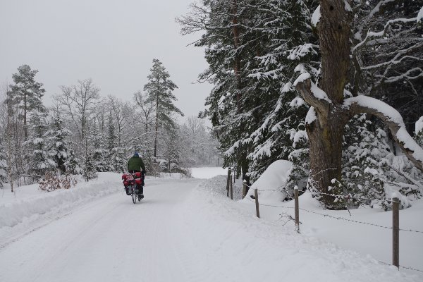Auf dem Eis konnten wir nicht mehr fahren, also ging es weiter über Land. Die Wege waren alle geräumt, auch die kleinen... zumindest solange sie zu einem bewohnten Gehöft führten.