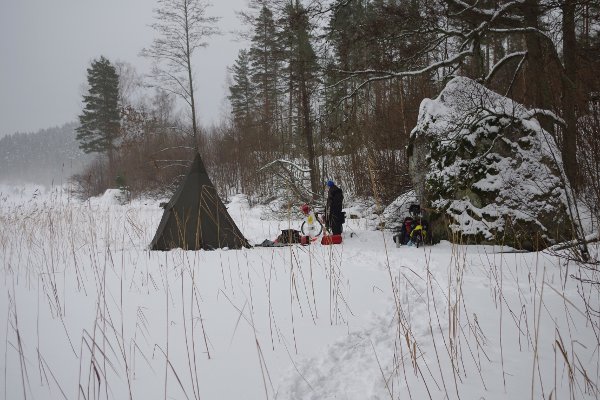 Campiert wurde jetzt immer auf gefrorenen Seen - hier am Ufer des Björkern.