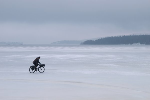Am nächsten Tag testeten wir die Fahrbedingungen auf dem Meereis. Eine überfrorene Matschauflage bremste ordentlich ab - man musste sich permanent durch etwa 2 cm dickes Eis brechen... Fazit: zu mühsam.