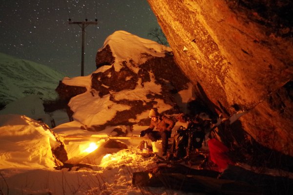 Am Fuße des Berges Darfáloalgi fand ich schließlich einen tollen Übernachtungsplatz mit Sitzbrettern unter einem Felsvorsprung. Wegen des stabilen Wetters war erneut kein Zelt nötig.