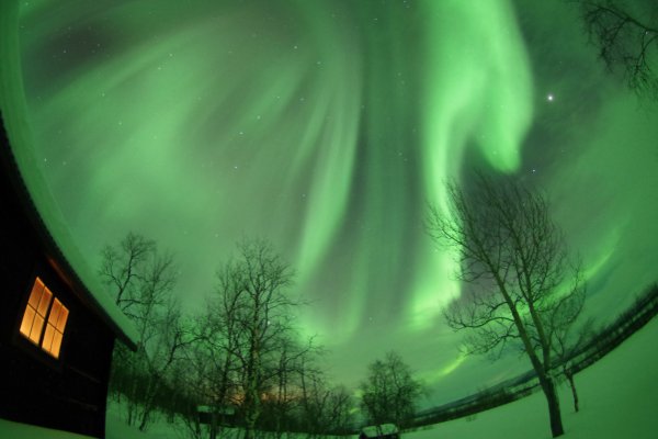 Zurück an der Straße übernachtete ich diesmal in einer bereits auf dem Hinweg ausgekundschafteten Rasthütte. Das zwischenzeitlich abgeschwächte Polarlicht flammte derweil noch mal richtig auf.
