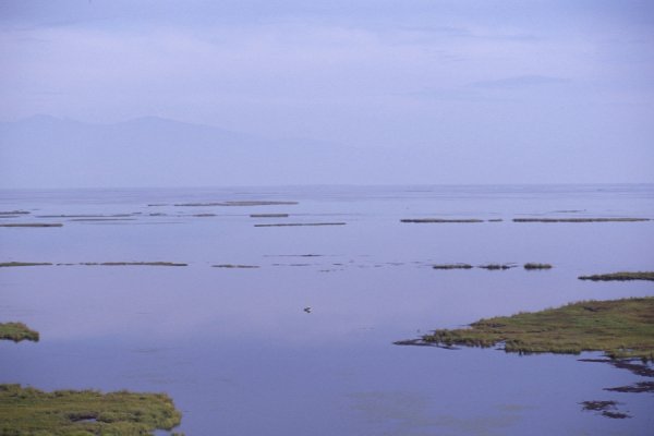 Einsamer Fischer in den Sümpfen der Oberen Angara-Mündung.