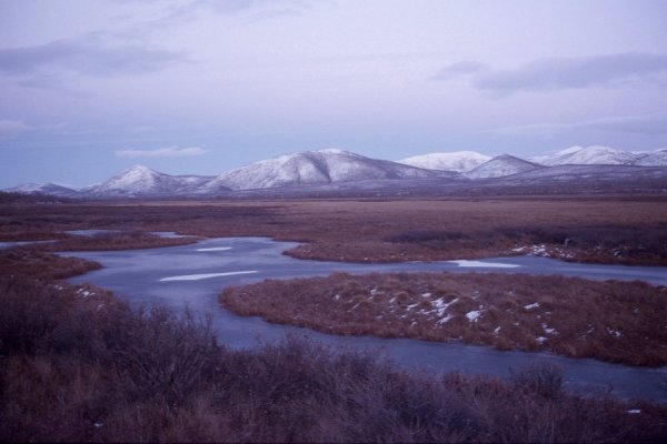 Gegendämmerung über dem Ojmjakon-Hochland.