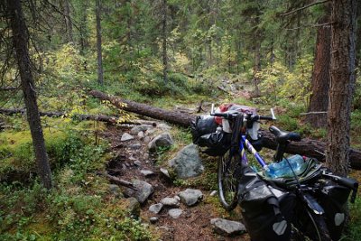 Allerdings bereitete mir der wegelose Abschnitt zwischen Ostsajan und Tuva-Becken etwas Kopfzerbrechen, denn es gab für mich wie auf bisherigen Touren ein bevorzugtes Fortbewegungsmittel: das Fahrrad. Mit selbigem war ich nun schon mehrfach in Russland, Sibirien und Zentralasien unterwegs gewesen. Im kirgisischen Tienschan ging es dabei auch mal einige Tage wegelos durch enge Flusstäler und über steile Bergpässe – auf Tierpfaden schiebend oder tragend, nie aber mehr als 50 km am Stück. Der Part durch die Taiga des Ostsajans war aber mit etwa 200 km um einiges länger – ein bepacktes Fahrrad hier vielleicht zwei bis drei Wochen auf wilden Fußpfaden durch die Wälder zu zerren, kam mir dann doch etwas heftig vor.