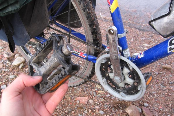 Am vierten Tag brach mir auf einer Passhöhe plötzlich die rechte Pedale ab...