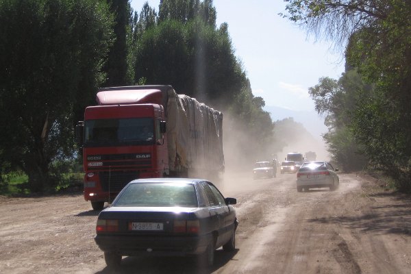 Einbeinig weiterfahrend machte ich auf stark befahrener Trasse einen Abstecher nach Kochkor.